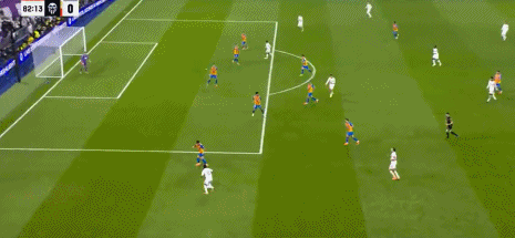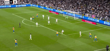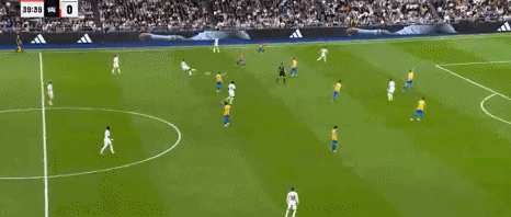 第44分钟,巴尔韦德助攻,贝林厄姆兜射入死角,皇马3-0